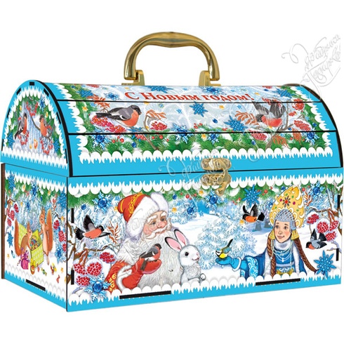 Фанера. Подарок упакован в красочный пакет с новогодней символикой.