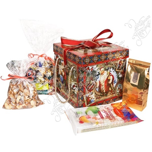 Состав: Конфеты 500г, Чай черный 50г, Смесь ореховая 200г, Рахат лукум 200г.
