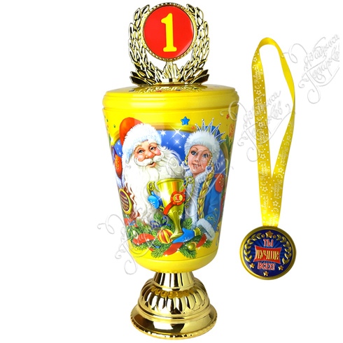 Подарок «Кубок» - заслуженная награда для самого любимого ребёнка на свете! Подарите малышу радость высокой самооценки вместе со сладостями и наилучшими пожеланиями.